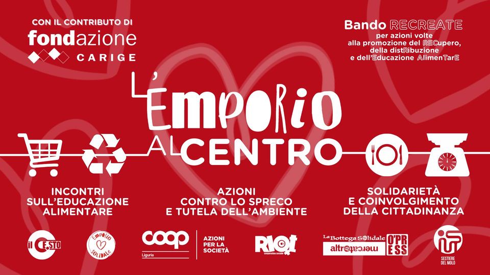 Sta per entrare nel vivo il progetto “L’EMPORIO AL CENTRO”, vincitore del bando “RECREATE per azioni volte alla promozione del RECupero, della distRibuzione e dell’Educazione AlimenTarE” finanziato da Fondazione Carige.
